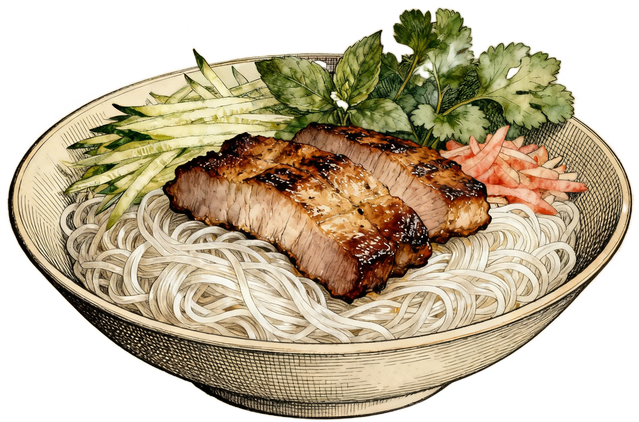 All Bo bun are served with rice vermicelli and two pieces of nems