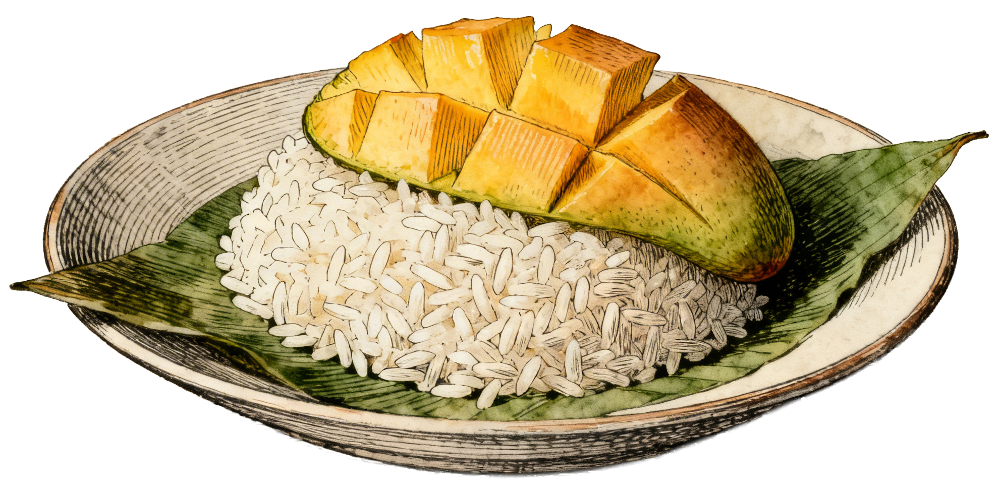Riz gluant à la mangue fraîche, sauce coco et graines de sésame